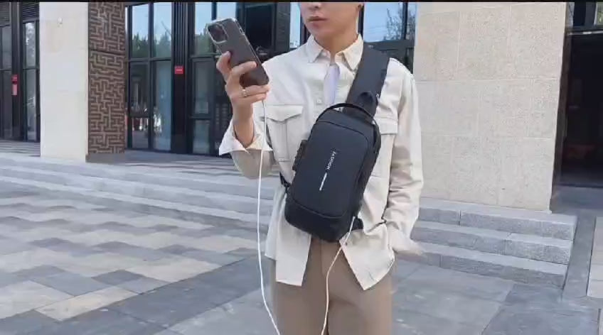 Feature: combination lock chest bag, multi pocket shoulder bag